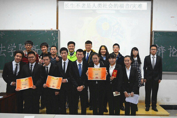 党委副书记叶军、辅导员伍安、校辩论队创始人赵曜、校学生会主席王琪琰出席了本次大赛。 经过初赛、复活赛、半决赛的较量,法学一班与法学四班在决赛场上相遇,两队围绕着“长生不老究竟是人类社会的福音还是灾难”的终极辩题展开了激烈角逐。比赛开始,双方一辩分别就各自立场阐述本方观点,立论陈述简洁有力,言辞条理清晰,将比赛瞬间拉入对战状态。在随后的攻辩环节中,二、三辩手紧促的问答使现场的空气高度凝结。自由辩论时,双方选手自然流畅地引用名家言论进行比拼,互不相让,大有博古论今之态,也将本次比赛推向了高潮,赢得现场阵阵掌声。比赛在双方四辩总结陈词后告一段落。 随后,赵曜对此次比赛进行了点评,并先后指出了正反双方的优缺点。他强调,辩论赛重在一个团体的配合,面对问题,唯有团结,才有可能赢得胜利。此外,此次辩题建立在可行的逻辑推理之上,具有一定的难度,虽然答辩过程中会存在有理说不清的问题,但选手答辩思维较为清晰,展现了实力。 最终法学四班代表队取得本次辩论赛的最终胜利,法学一 班林浩获得“最佳辩手”的称号。 (责任编辑:admin) |