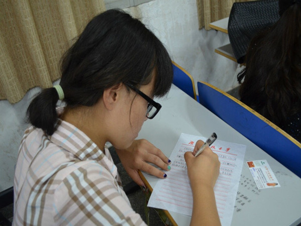第十一届团委宣传部部长曾诗鑫、物理与电子科学学院宣传部部长王亚兵等嘉宾到场进行指导。 晚上7点整,比赛在震撼的开场视频中拉开序幕。首先进行的是短作文写作比赛。一段视频引出了本次短文写作的主题,小小参赛者们开始提笔思索,顿时浓郁的写作气氛充斥着整个赛场...... 紧接着,由主持人向大家展示了本次长作文写作的备选题目。《给五年前的我》、《盲》、以“秋天责备”和“诗·史”为主题作文。这些作文题目看似新颖,其实是想让参赛者能够取材于生活,用慧眼来发现平凡中的美,引导大家捕捉生活中的精彩。“我们从来无法预知未来,也无力改变历史,如今的欢笑苦痛都是既定的,若知今日,还愿意好好地对曾经的自己说些什么。提起笔,轻叙慢述,给自己一个完美的交代.......”正如《给五年前的我》这一作文题所要求的这样,能够在文字中去认清现在的自我,或许在未来的航路里,我们才不会迷失方向。 时间在沙沙的写字声中悄悄流逝,赛场上法院骄子、物电精英肆意挥洒,激扬文字,任墨香飘散于教室之中。他们时而托腮凝思,时而奋笔疾书,用生花妙笔尽情书写人生,来抒发自己的真情实感. 数风流人物,还看今朝。写作小能手即将在他们中间诞生。2014级法学院和物理与电子科学学院的精英们,让我们共同拭目以待! (责任编辑:admin) |