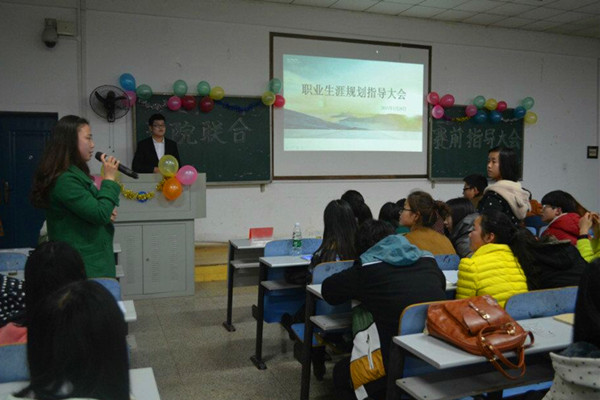 | ——记职业生涯规划大赛指导大会 3月20日晚上七点,由法学院、物理与电子工程学院、生命科学学院、外国语学院和教育学院五院联合举办的大学生职业生涯规划大赛指导大会于八教3-3 教室成功举办。校就业服务部代理部长李滔,就业协会会长胡磊等嘉宾应邀出席,上届获奖者也亲自到场指导。 来自物理与电子工程学院的路子龙代表获奖嘉宾首先上台发言,以诙谐幽默的话语论述其比赛经验与心得,他将此次比赛分为职业生涯,规划和比赛三个层次,其中,职业生涯是目的,规划是实现手段,而比赛仅仅是一个平台,透过这个平台,去了解自己,进而规划人生。芭乐视频