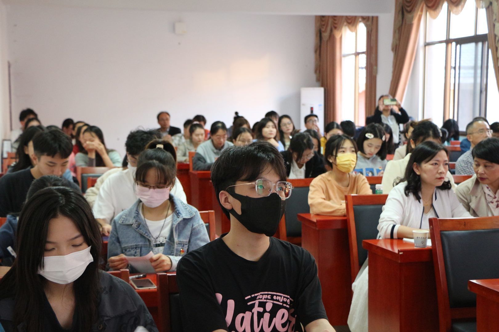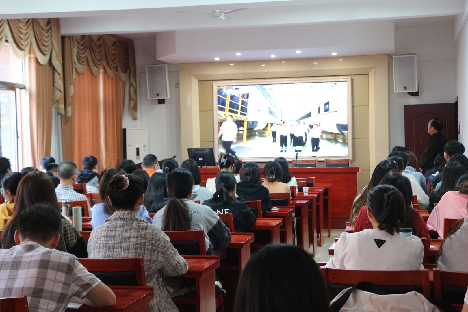 而后谈及从严治党,谢教授就从严治党的伟大成就、全面从严治党的标尺、中华大地清风正劲等三个方面全面解读了党的十九大以来反腐斗争取得的伟大硕果。在反腐反贪的成就上,他以视频的形式为大家直观地展示了出来,使与会人员大受震撼。在视频结束之际,谢书记发自真心的感慨道:“在监狱里的人向往着自由,在医院里的人向往着健康,而对于那些被判死刑的贪腐官员来说,他们却无比向往着活着,但这是没有回头路可言的。”正如谢书记所言,全面深化从严治党的复兴道路上,只有对贪腐行为做到“零容忍”,刹住多年未刹住的歪风邪气,解决长期没有解决的顽瘴痼疾,打好自我革命攻坚战,持久战的清晰信号,才能“不负十四亿中国人”。